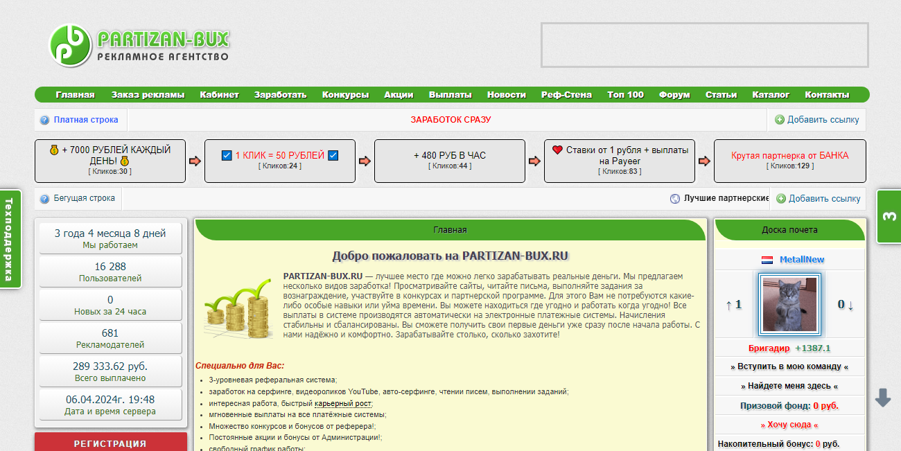 PARTIZAN-BUX.RU — лучшее место где можно легко зарабатывать реальные деньги. Мы предлагаем несколько видов заработка! Просматривайте сайты, читайте письма, выполняйте задания за вознаграждение, участвуйте в конкурсах и партнерской программе. Для этого Вам не потребуются какие-либо особые навыки или уйма времени. Вы можете находиться где угодно и работать когда угодно! Все выплаты в системе производятся автоматически на электронные платежные системы. Начисления стабильны и сбалансированы. Вы сможете получить свои первые деньги уже сразу после начала работы. С нами надёжно и комфортно. Зарабатывайте столько, сколько захотите!