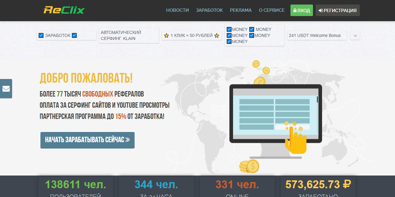 Reclix.ru - Это рекламная площадка, которая обеспечит целевые переходы по разумным ценам для рекламодателей и стабильный доход для пользователей. В сервисе существуют два типа пользователей: Один аккаунт одновременно может быть и рекламодателем и исполнителем для удобства. В нашей системе все функционирует в автоматическом режиме, как оплата рекламы так и вывод заработанных средств.