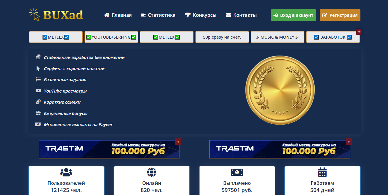 BUXad - это стабильный заработок без вложений. На сайте собраны самые простые и легальные способы заработка в интернете. Просматривайте рекламные сайты и видео, выполняйте простые задания, проходите короткие ссылки и получайте за это достойную оплату.